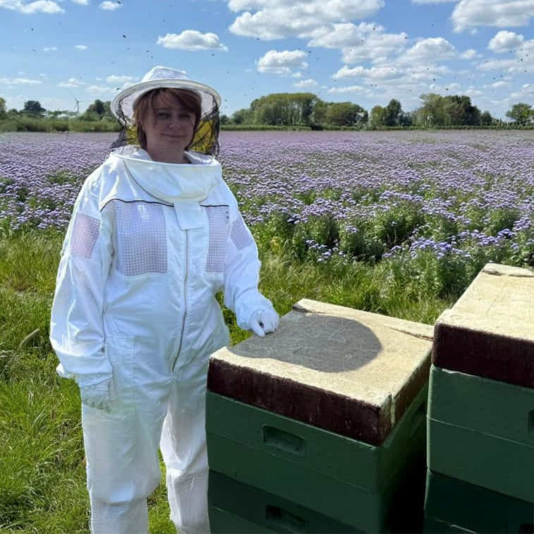 Das erste Bild auf dieser Seite zeigt Thorben bei den Bienen – inmitten der Rapsblüte. So beginnt unser Bienenjahr, mit Duft, Summen und dem ersten goldgelben Honig. Ein Stück weiter unten: Oksana, ebenfalls am Bienenstand. Ohne ihre Sorgfalt beim Schleudern und Verarbeiten gäbe es keinen Nordbienchen®-Honig, wie wir ihn lieben.